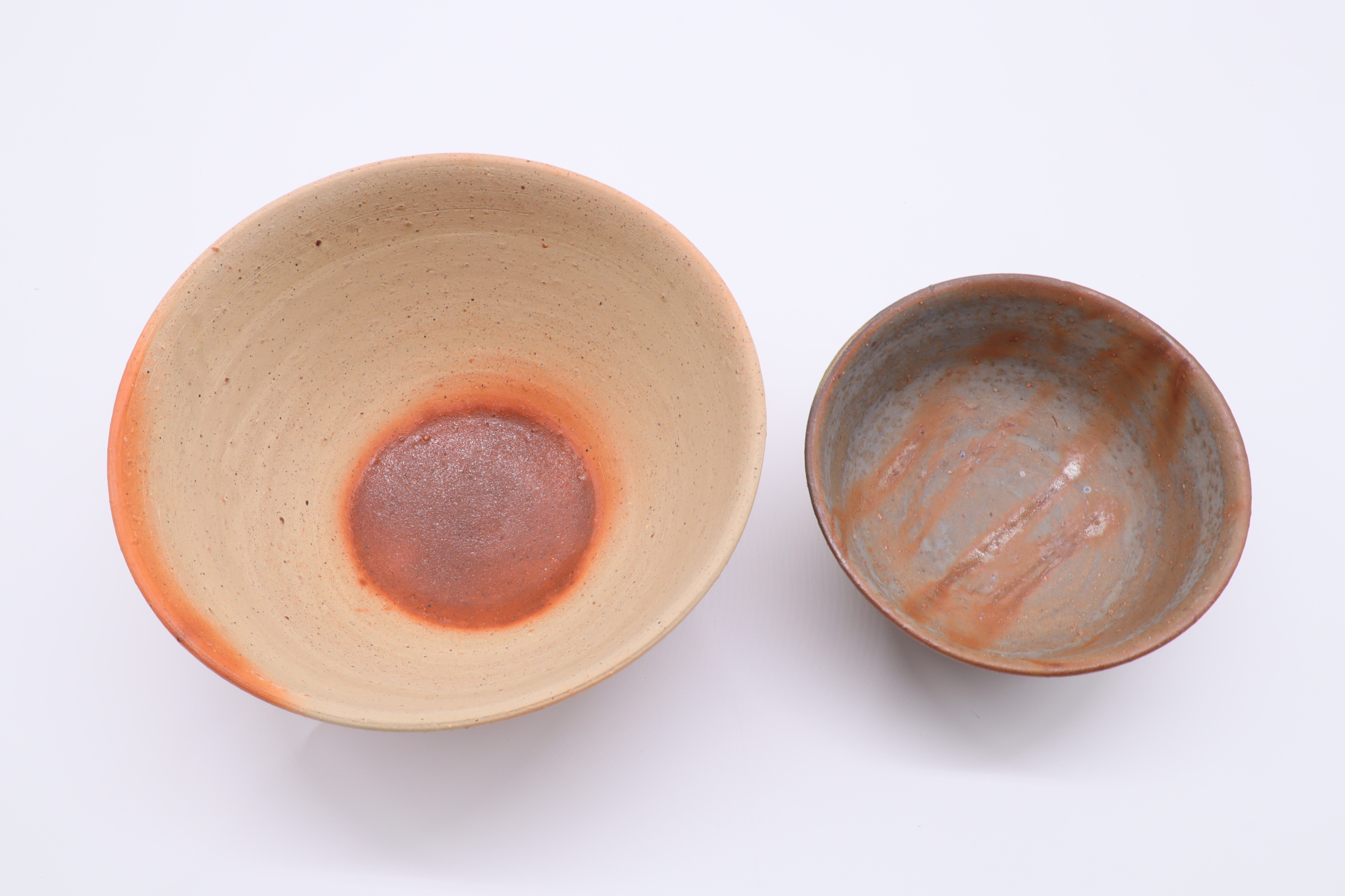 異なる緋襷の焼の飯碗セットがお料理を引き立てます。飯碗の他サラダボウルとしても幅広くお使いいただけます。